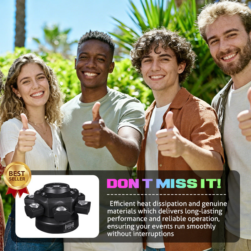 DYNAMIC SIX-ARM DESIGN - Features six independently moving arms, each projecting a powerful beam. This creates stunning, room-filling effects and energetic light shows that captivate any audience, enhancing the atmosphere of your event.